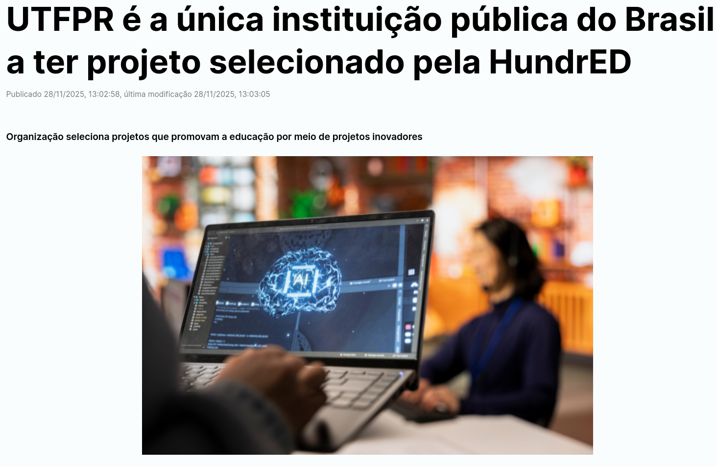 • 50+ news articles published in national and international outlets such as Globo, Band, Olhar Digital, Veja, IDRC, UTFPR, USP, AI4PEP, among others;