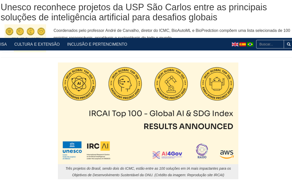 IRCAI – UNESCO | Top 100 Global AI Solutions for the SDGs (2025). BioAutoML was selected among the world’s most impactful AI initiatives addressing the United Nations Sustainable Development Goals. Rated Outstanding (highest distinction) by international reviewers and included in the IRCAI Global Index of AI Innovations. One of only three Brazilian solutions featured in the 2025 global selection.